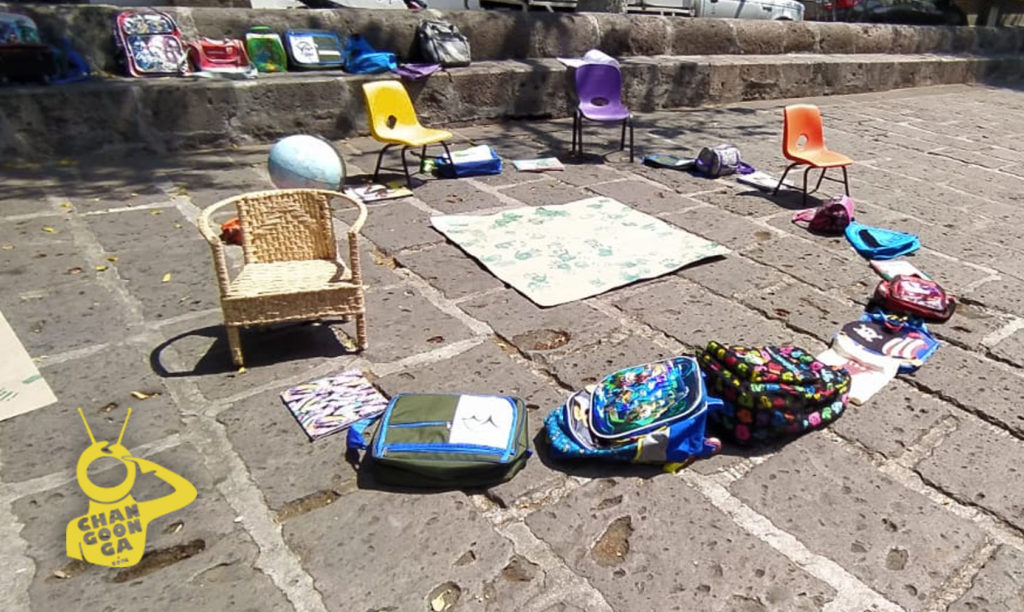 Con mochilas, cartulinas, y sillas escolares, los padres montaron una protesta sobre la calzada conocida como “San Diego”, además de que contaron con una pantalla que narraba han pasado 365 días sin clases, lo cual ha afectado a los pequeños de manera social y mentalmente, por lo que piden se reabran las aulas.