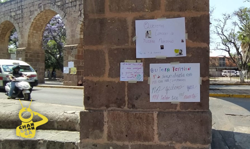 Esta mañana de sábado, papás morelianos han salido a la calzada Fray Antonio de San Miguel a manifestarse para exigir que se regrese a las aulas, esto tras el llamado la semana pasada de pedir #AbreMiEscuela.