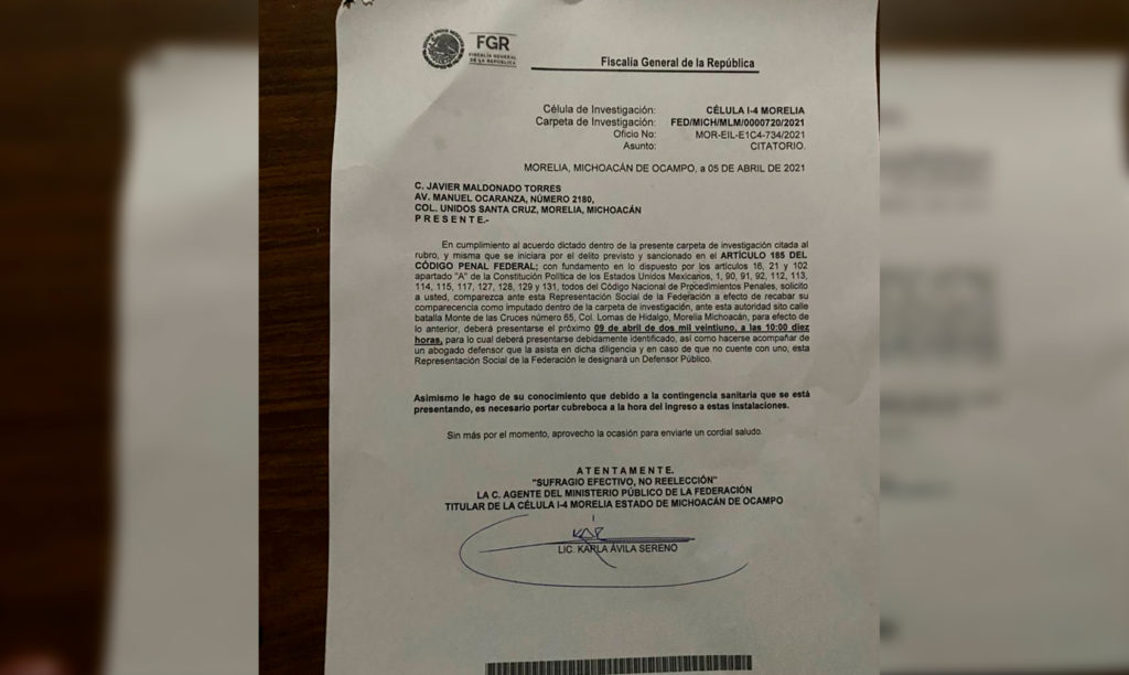 Javier Maldonado Torres, actual líder de la de la Asociación de Trabajadores del Estado de Michoacán (ATEM), fue citado ante la Fiscalía General de la República (FGR) delegación Morelia, por daños a los servicios del Instituto de Seguridad y Servicios Sociales de los Trabajadores del Estado (ISSSTE) por la protesta en las oficinas centrales desde el pasado 17 de marzo.