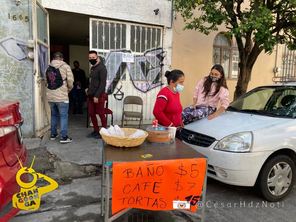 Adrián vio la posibilidad de emprender un negocio temporal, para dar servicio de baños a las personas en la fila, al igual de la venta de algunos alimentos y bebidas a precios muy accesibles.