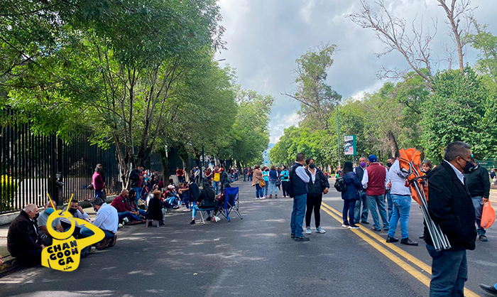 Justo sobre Avenida Acueducto, se encuentran el Frente Estatal de Sindicatos de Educación Media Superior y Superior (FESEMSS), quienes exigen también el pago de sus quincenas atrasadas y bonos pendientes.