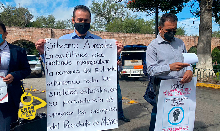 Las y los profesores de los sistemas de Telesecundaria, de los subsistemas de bachillerato y Profes de la CNTE, se juntaron para protestar, estos últimos frente a la Secretaría de Finanzas.