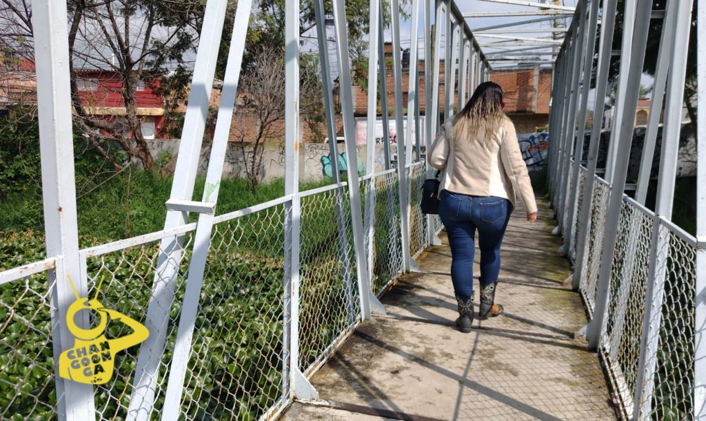 Diario utiliza uno de los puentes peatonales para poder tomar un transporte que la lleve a su trabajo, a través de este puente ha podido ser testigo del aumento del nivel del río y del crecimiento del río.