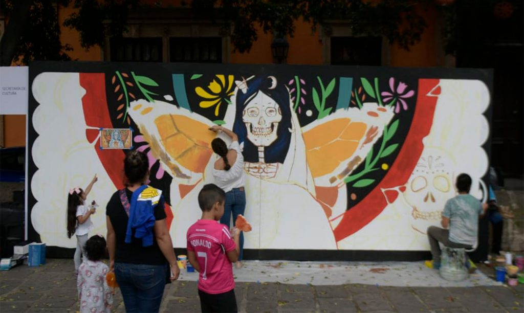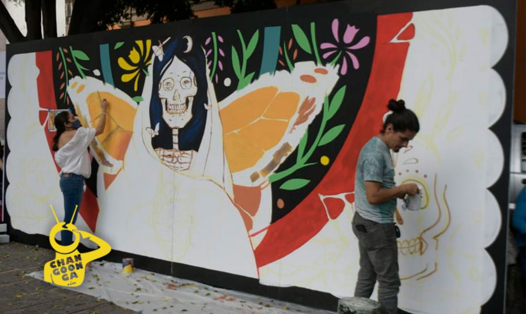 La obra tardará cuatro días en concluirse, y debe estar lista para el próximo domingo. Al momento tiene tal avance que ya se puede comprender de lo que tratará este mural, con una calavera pintada al centro y los trazos de unas alas de mariposa, puede comenzar a disfrutar del tema de la pieza.