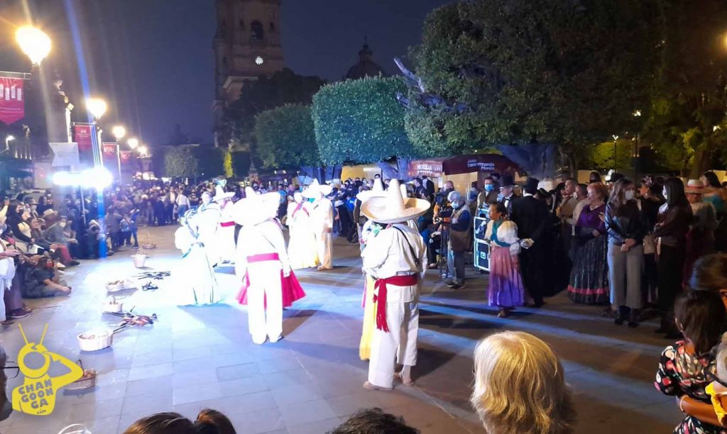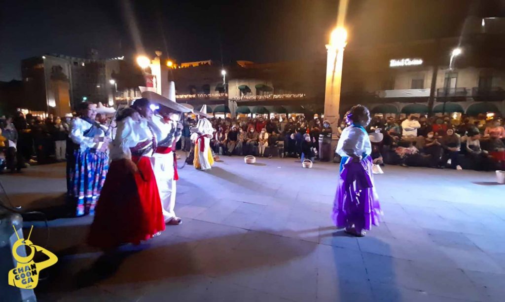 «Plaza de Armas» fue la elegida para inundarse con música, tradición y color, recibiendo primeramente al Ballet folclórico Atzimba de la asociación de jubilados pensionados del estado, quienes portaban trajes típicos de la época de 1910.