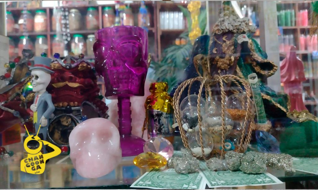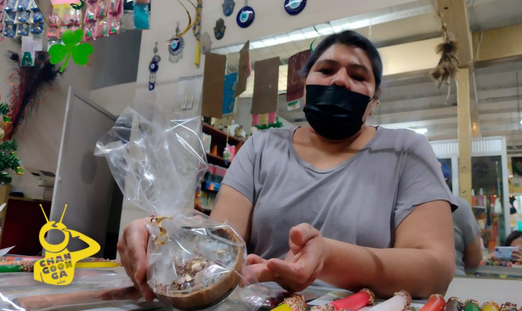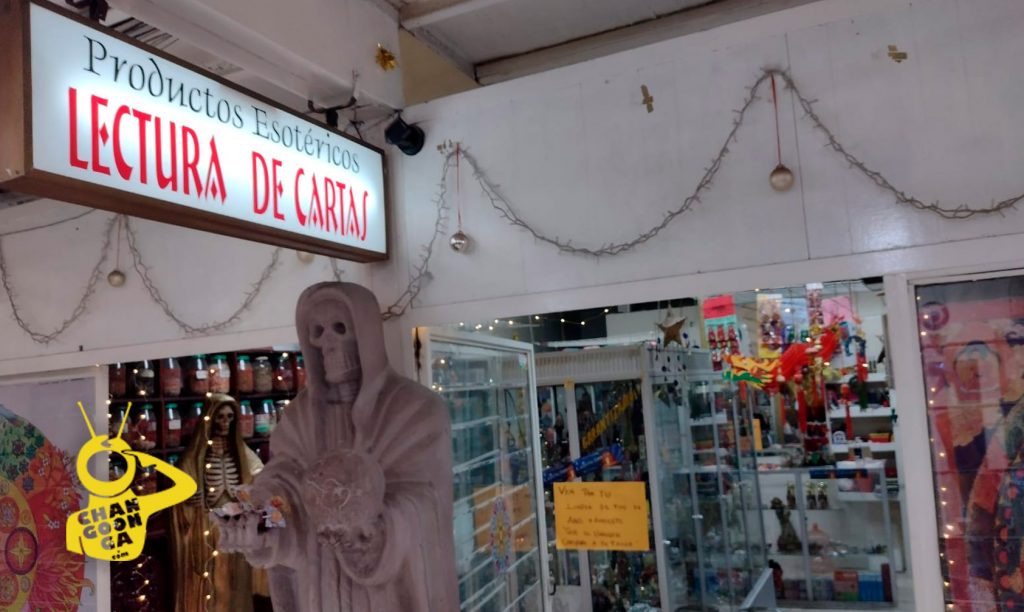 En el pasillo de la Plaza Capuchinas una «Muerte de Cantera» te invita a pasar a la tienda esotérica «Guillermo’s», dónde podrás adquirir los amuletos para recibir el 2022, los más buscados para iniciar el año son amuletos para el trabajo, el dinero y abrir caminos, el ambiente de la tienda ayuda a que tus energías se tranquilicen mientras estás en el lugar, entre santos, estatuas de animales, y un sin fin de velas de colores, puedes obtener ayuda para que el siguiente año sea abundante.