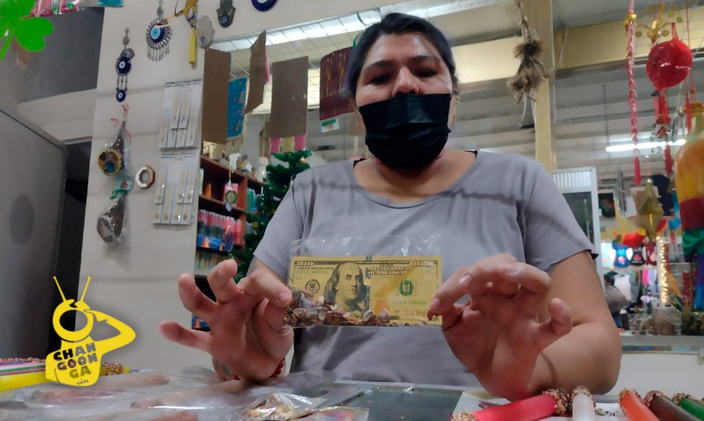 “Para esta temporada lo que nosotros estamos recomendando es un morralito que trae cuarzos, un lingote de oro, trae su dólar, un borreguito y un tigre, que en el año chino nos va corresponder el año del tigre, entonces este amuletito nos va a servir para el 2022”, explicó Guillermina.