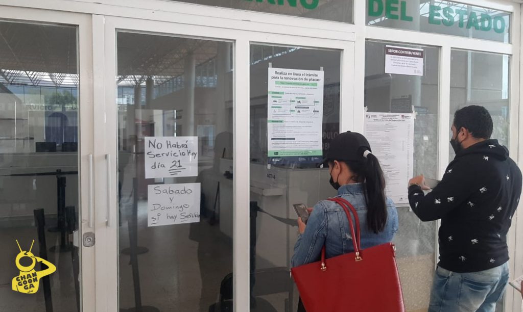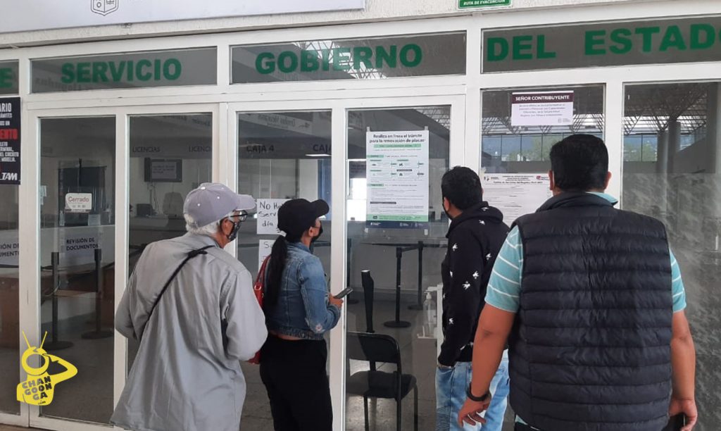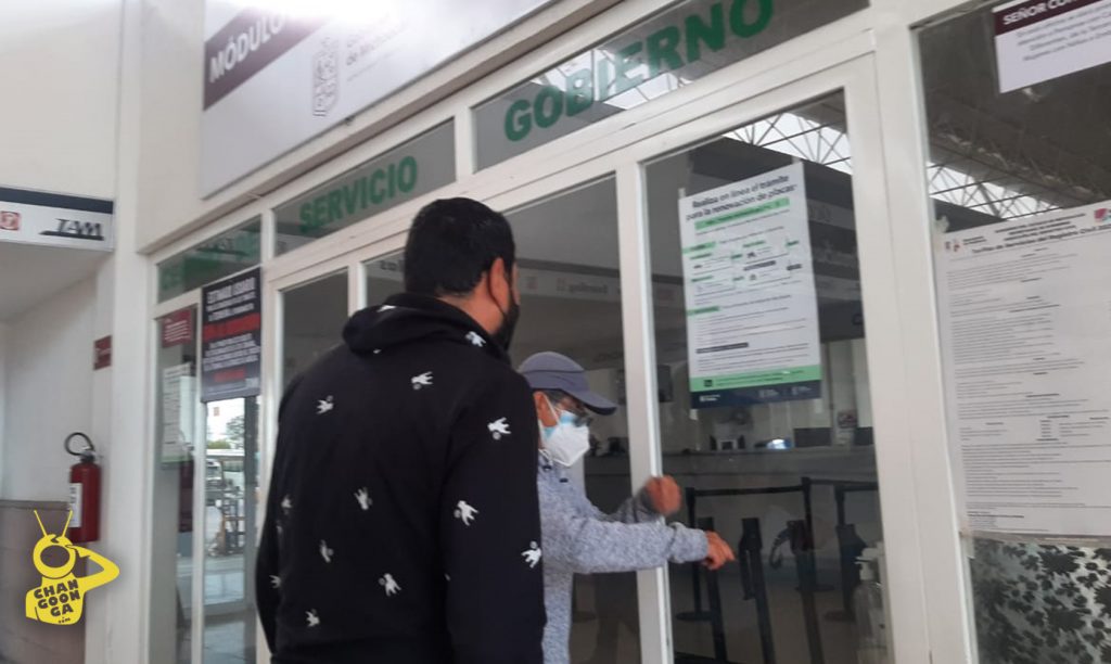 En el interior, se puede observar a personal sentado detrás del escritorio donde se realiza este trámite, sin embargo, únicamente hacen señas desde adentro a las personas que se acercan a tratar de conseguir mayor información.