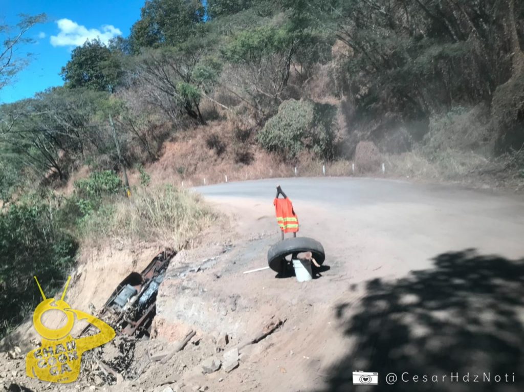 Kilómetros antes de llegar a Coalcomán se encontraba una brigada perteneciente al “Programa Emergente de Bacheo” del gobierno del estado de Michoacán, quienes con máquinas realizaban el proceso de reconstrucción de la cinta asfáltica.