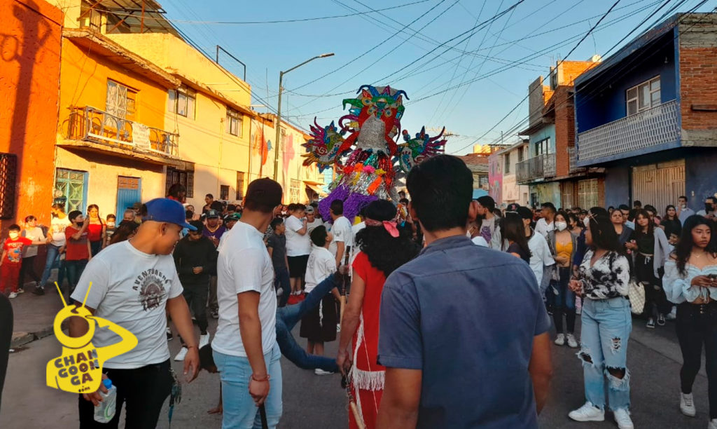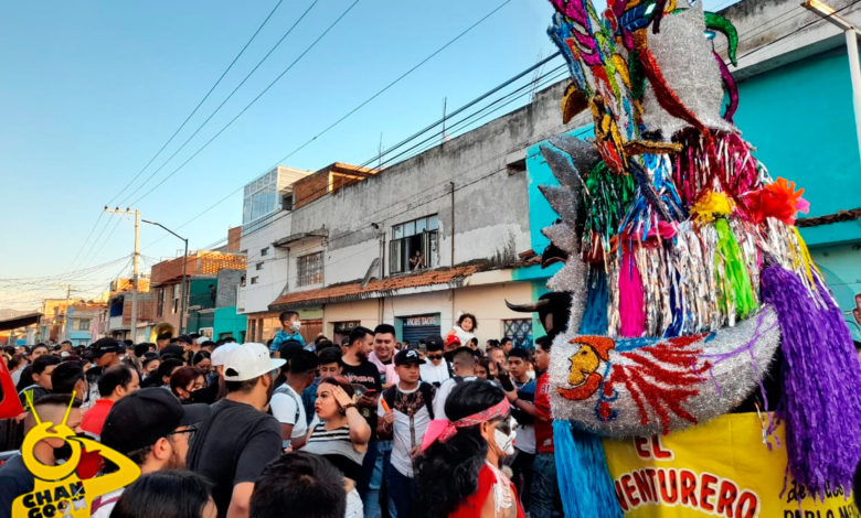 Con banda, cerveza, machetes, sin sana distancia, nulo uso del cubrebocas pero mucha alegría, es como los colonos de la Ventura Puente salieron esta tarde a bailar al poderoso «El Aventurero» su clásico torito de petate.