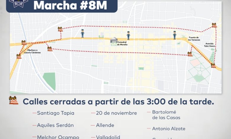 En ese sentido, se informa a la ciudadanía que se realizarán cierres viales a partir de las 3:00 de la tarde desde la zona del Obelisco a Lázaro Cárdenas hasta la avenida Tata Vasco, tanto en la Avenida Madero, como en las siguientes calles aledañas: Santiago Tapia, Aquiles Serdán, Melchor Ocampo, 20 de noviembre, Allende, Valladolid, Bartolomé de las Casas, Antonio Alzate y Corregidora.
