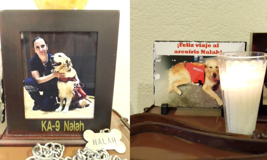 Tras 10 años de vida, Nalah, la perrita rescatista ayudó a la localización de 17 personas, 12 de ellas en los colapsos provocados por el terremoto del 19 de septiembre de 2017.