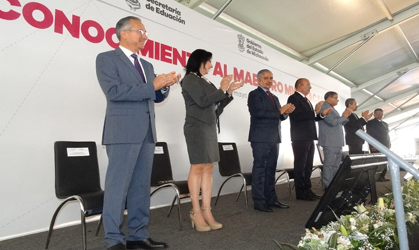 En compañía del Secretario de Educación Estatal, Alberto Frutis Solís; el Rector de la UMSNH, Medardo Serna González; y el Profesor con 50 años de servicio, Rogelio Saavedra Madrigal; Sistos Rangel reconoció la labor y entrega que realizan los docentes, no sólo en la Capital del Estado sino en todo la Entidad y la República Mexicana, lo cual se refleja en la formación de los alumnos.