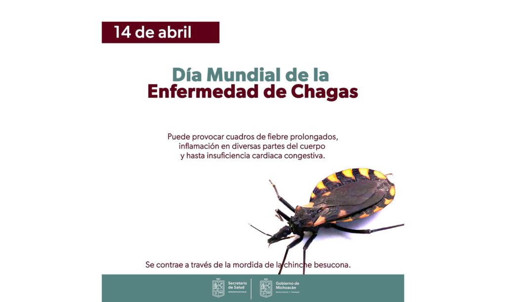 En el marco del Día Mundial de la Enfermedad de Chagas, la Secretaría de Salud de Michoacán (SSM) informa a la población que esta afección es provocada por mordeduras de la chinche besucona, portadora del protozoario Trypanosoma cruzi, y que en los centros de salud y hospitales se ofrece atención y tratamiento gratuito a los pacientes con chagas.
