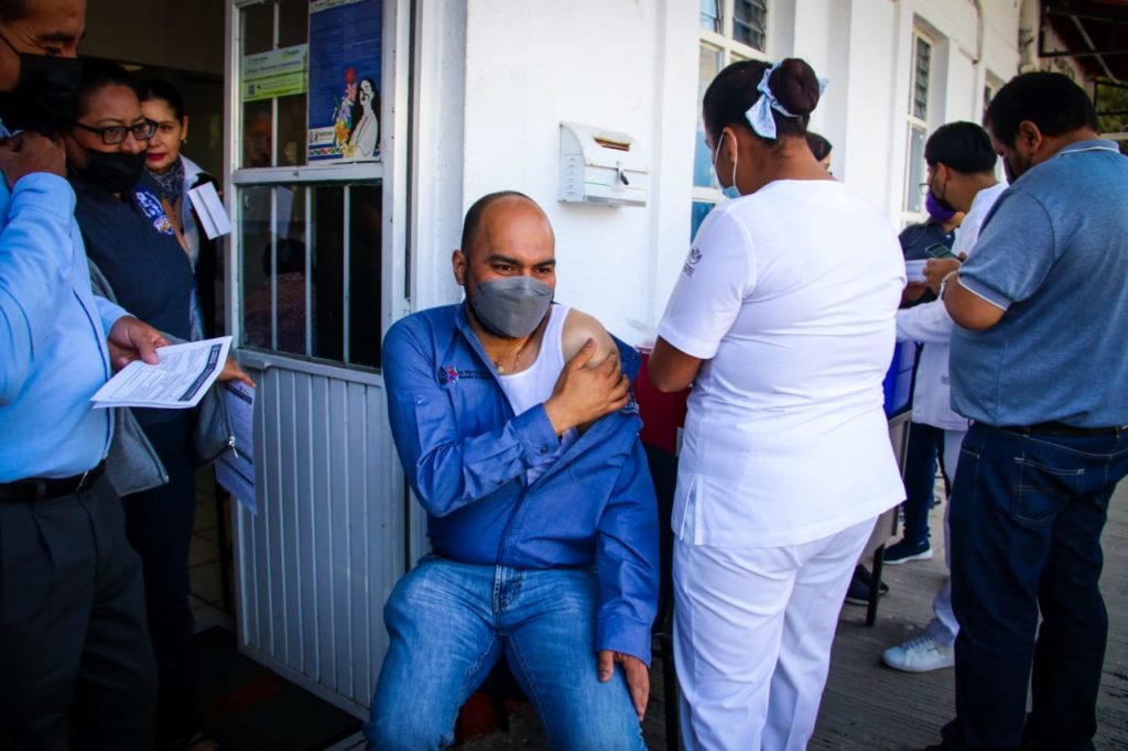 Con el fin de proteger la salud del personal que labora en la presidencia municipal de Uruapan y de las personas que acuden a sus diferentes dependencias, empleados municipales recibieron por parte de personal del Instituto de Seguridad y Servicios Sociales para los Trabajadores del Estado (ISSSTE), la vacuna de refuerzo AztraZeneca contra el Covid-19.
