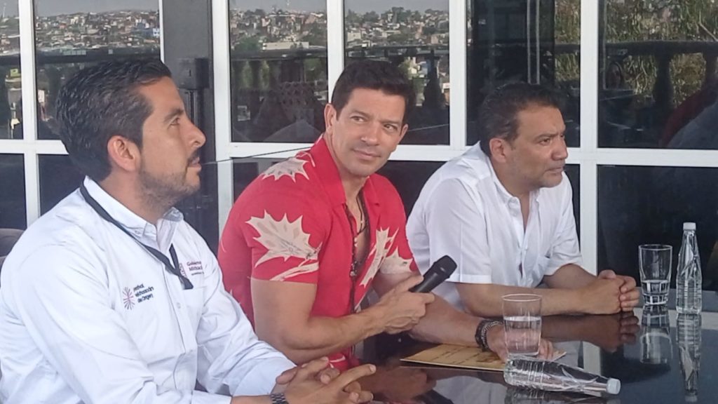 Con una vestimenta de pantalón negro ajustado de vinipiel, camisa roja con estampado de hojas cafés que hacían lucir sus bien trabajados brazos, mencionó en una rueda de prensa que se llevó a cabo en la Mansión Solis, que este sería su primer concierto después de una larga recuperación de una operación que tuvo en los senos paranasales y la pandemia.