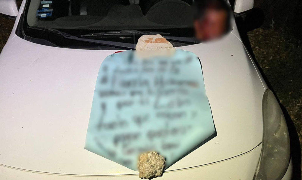 Una vez en el sitio los oficiales observaron que se trataba de un taxi, Nissan Versa, con placas R-024-LBA y número económico 10, donde delincuentes colocaron la extremidad cefálica y una cartulina con un mensaje de amenaza. Al revisar dentro de la unidad, se halló el resto del cadáver, de un masculino desconocido de aproximadamente 40 años de edad.