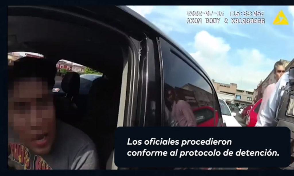 Incluso en el material captado por las cámaras corporales de los oficiales dieron muestra de que las jóvenes acusaron al detenido de haberse bajado evidentemente agresivo, de la misma manera se ve al sujeto jalar a un policía y realizar varias faltas administrativas.