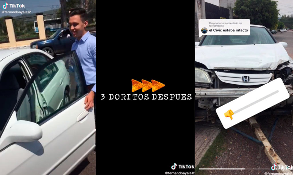 A través de su cuenta de TikTok, el joven identificado como Fernando Ayala, quien parece ser originario de Michoacán, relató que acababa de terminar su licenciatura por lo que el día de su graduación, sus padres decidieron regalarle su primer vehículo, mismo que choco a tan sólo dos kilómetros de haber arrancado.