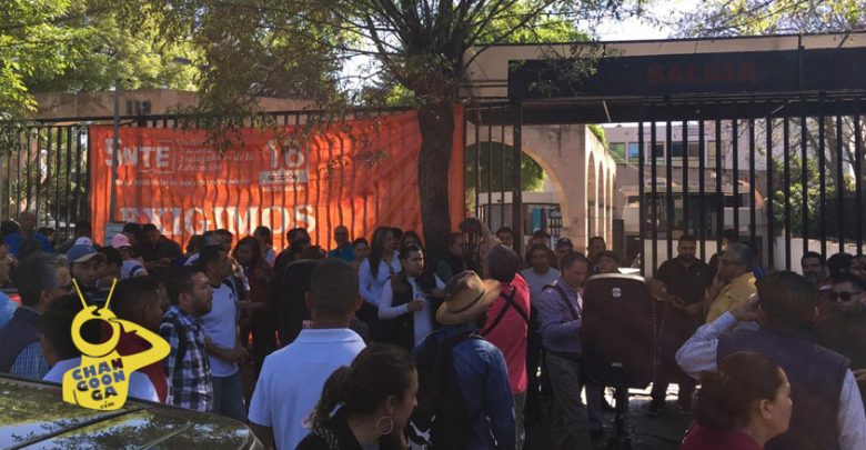Decenas de integrantes de la sección 18 del Sindicato Nacional de Trabajadores de la Educación (SNTE), se manifestaron esta mañana frente a la Secretaría de Finanzas y Administración para exigir al gobierno de Michoacán el pago de los adeudos al personal eventual, informó Dimas Sagaón Hernández, representante del Comité Ejecutivo Nacional.
