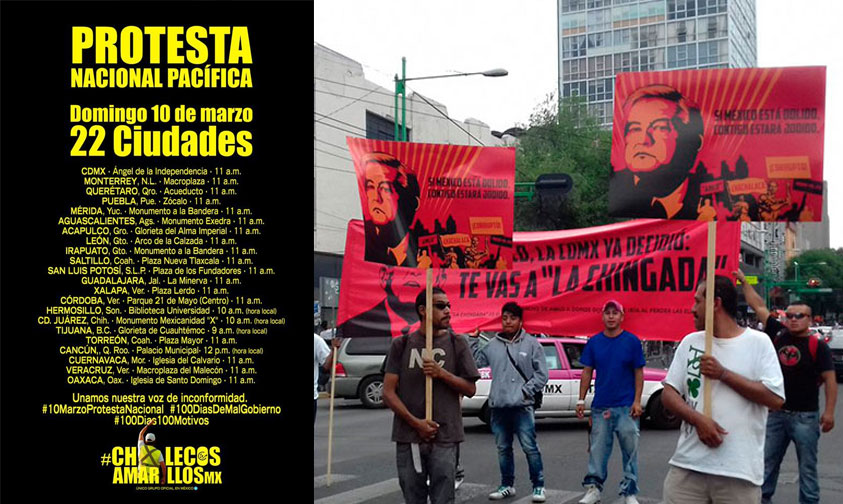 De acuerdo con la imagen, misma que está firmada a nombre de Chalecos Amarillos MX, se convoca a 22 ciudades de la república mexicana al movimiento pacífico que se realizará el próximo domingo 10 de marzo.
