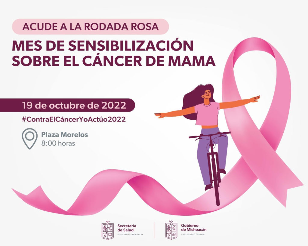 Como parte de las actividades del mes de la sensibilización sobre el cáncer de mama, la Secretaría de Salud de Michoacán (SSM) y el Sistema DIF Estatal realizarán, el próximo miércoles 19 de octubre, una rodada rosa.