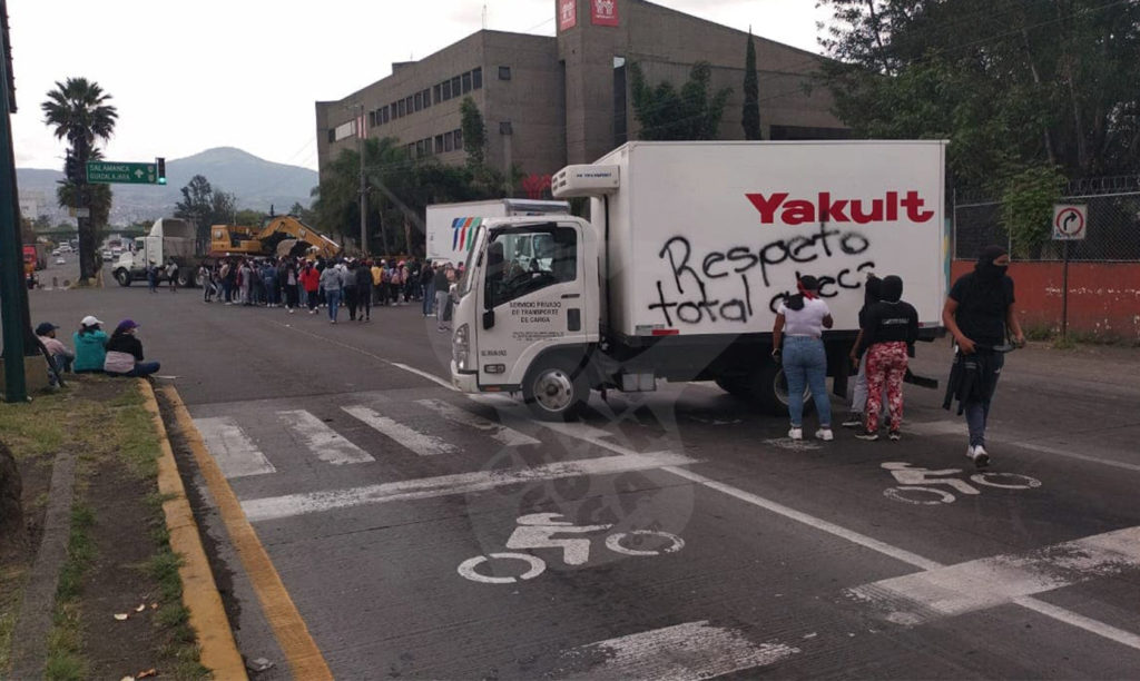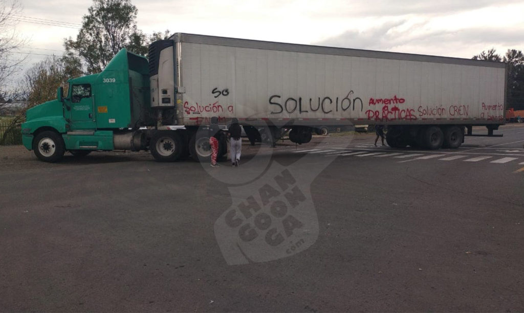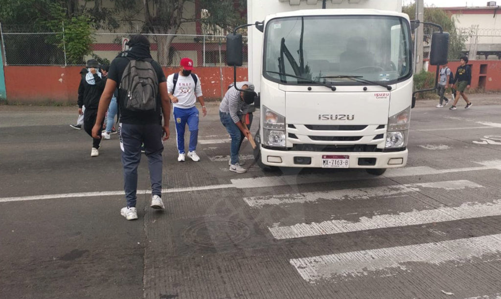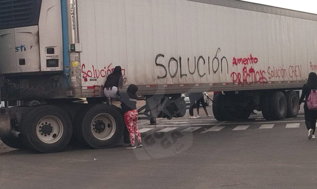 Los estudiantes interceptaron dos tractocamiones con cajas de transporte y un camión de reparto, con los cuales taparon el cruce del Libramiento de la ciudad con la avenida Siervo de la Nación.