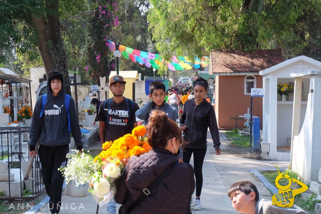 Con flor de cempasuchil, flor de nube, rosas, papel picado, globos, serpentinas y algunos accesorios característicos de los difuntos, es como se ven adornadas las tumbas.