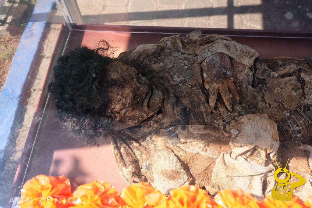 Algo que es también diferente este año es que podrás ver y conocer algunas momias que se están exhibidas al rededor de la fuente principal del cementerio, en donde trabajadores de la funeraria Santa Cruz te explican, cuantos años tienen, como las sacaron, sus nombres y por qué no, ofrecen sus servicios para que te prepares en un futuro con el ataúd y lo compres para el último día de tu vida.