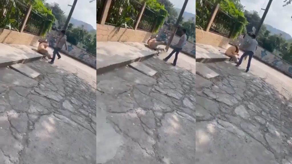 En el video se observa como un señor va caminando por la banqueta a lado de un joven que le está hablando, sin embargo, al llegar a la esquina de la calle Ignacio Lugo Terán, en la colonia Juárez, el chico se aleja para agarrar fuerza y soltarle un puñetazo justo en la cara del anciano.