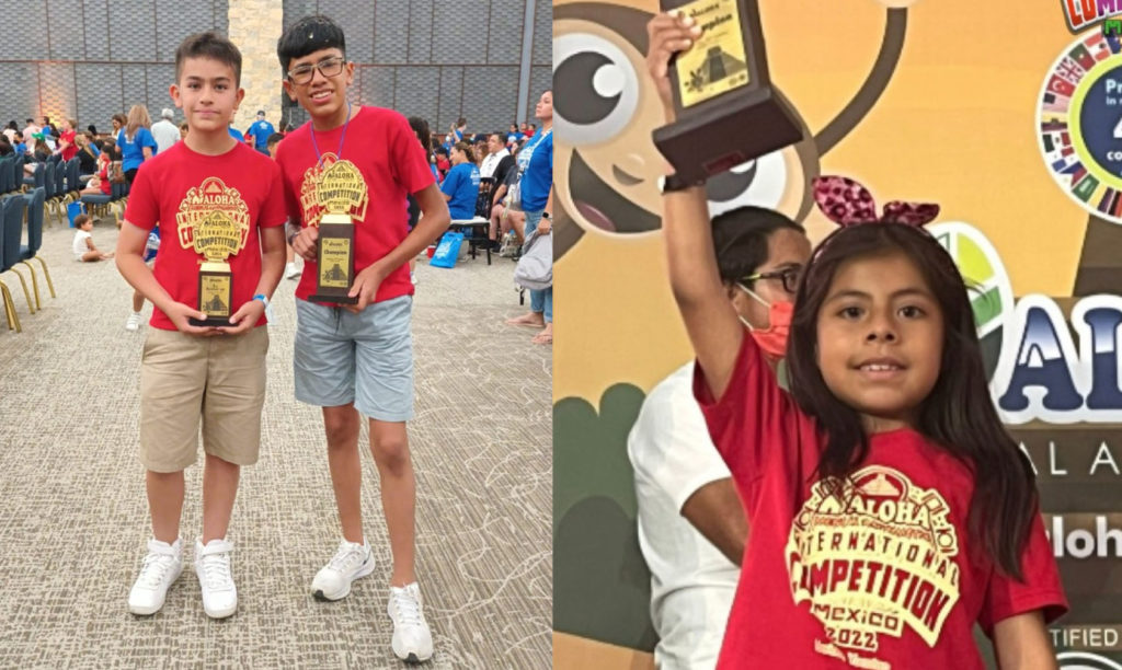 Los también llamados niños calculadora, obtuvieron en este justa internacional 69 aciertos de 70 posibles siendo condecorados con el nivel “Champión” así como Alejandro Zayas Calderón de 12 años quien obtuvo un tercer lugar ante más de 500 niños de 40 países diferentes.
