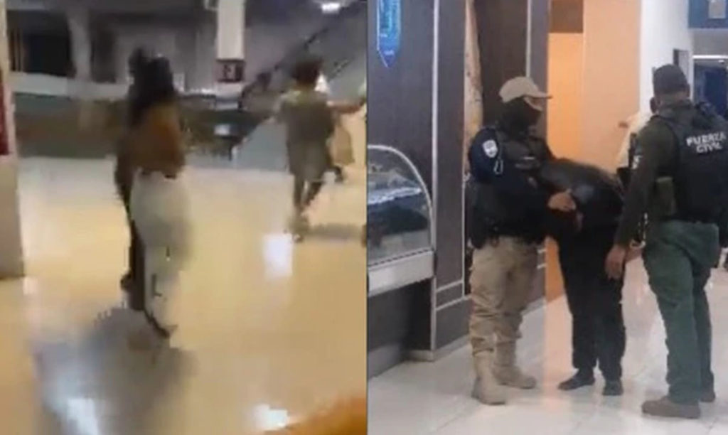 En redes sociales se compartió un video de cómo fue retirado el posible tirador de la plaza, iba esposada y custodiado por elementos de seguridad.