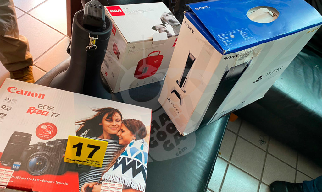 Tras obtener dicho mandato, agentes de la Policía de Investigación se trasladaron a la propiedad donde aseguraron dos pantallas y una base para televisión, una cafetera, un frigobar, un megáfono, una consola de videojuegos con un par de controles, un robot roonba y un celular, mismos que fueron asegurados.