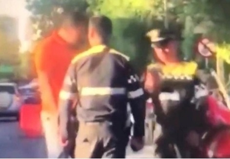 Los hechos fueron captados en video por un automovilista y en el clip que circula en redes sociales, se muestra como durante la discusión, es uno de los uniformados quien inicia la riña a golpes, ´pues tira un cabezazo al chofer.