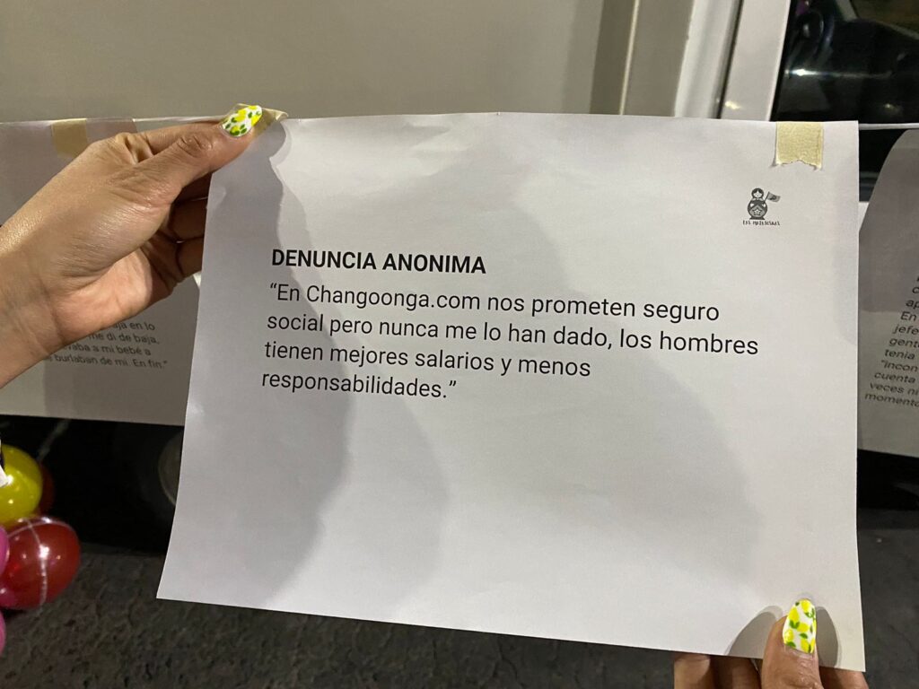 «En Changoonga.com nos prometen seguro social pero nunca me lo han dado, los hombres tienen mejores salarios y menos responsabilidades”, se lee en otra de las denuncias.