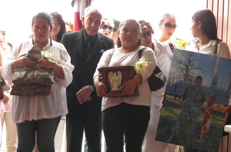 Sus familiares más cercanos caminaron hacia el altar sosteniendo la urna con sus cenizas, la bandera de los Estados Unidos, aquella bandera con la que hace unos días, sus compañeros le brindaron honores, su uniforme militar y una foto de la joven que tanto amaban.