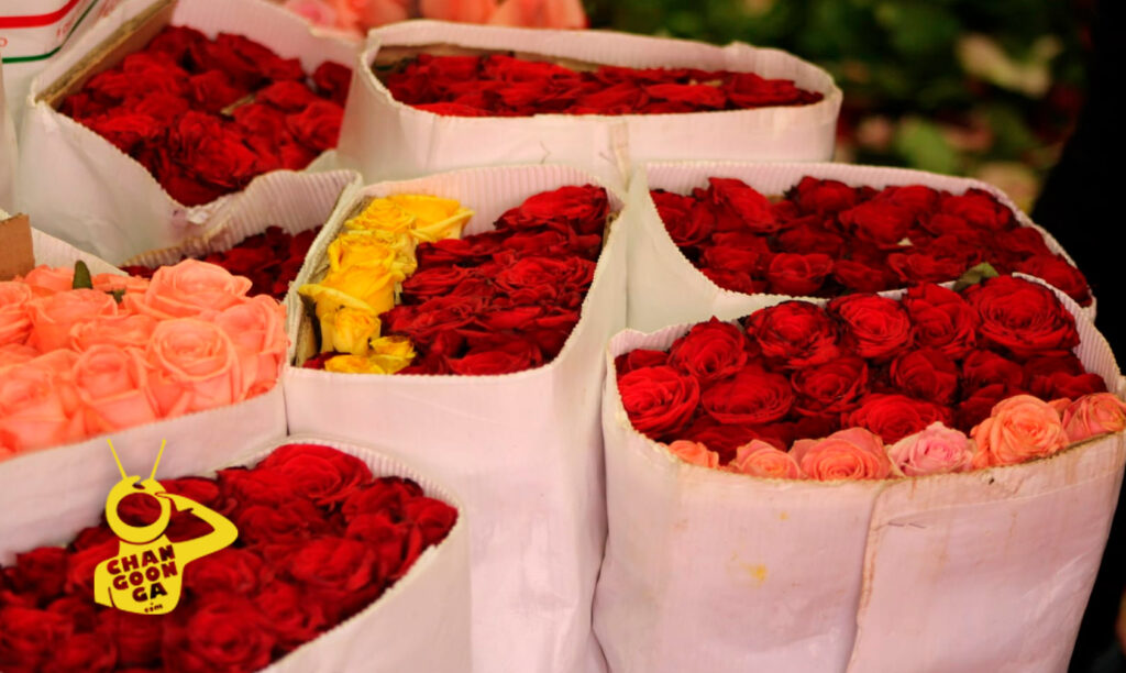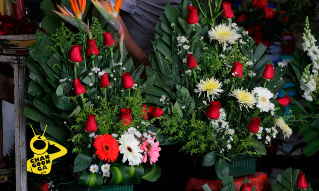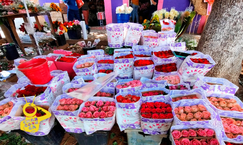 Comencemos con el mercado de San Juan, dónde se puede encontrar la docena de rosas rojas, o cualquier otro color, en 150 pesos, mientras que los buquet o arreglos florales, van desde los 125 pesos el más pequeño, dentro de una canasta de plástico, hasta cumplir deseos del cliente.