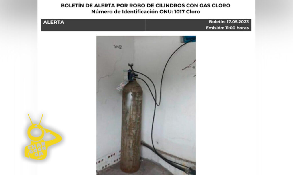Hace unos momentos, la Coordinación Nacional de Protección Civil de la Secretaría de Seguridad y Protección Ciudadana, emitió una alerta urgente por el robo de cilindros con gas cloro en el estado de Guerrero. Este gas puede ocasionar la muerte si se inhala o se absorbe por la piel. Se presume que los cilindros podrían localizarse en Michoacán, Estado de México, Morelos, Guerrero, Oaxaca o Puebla.