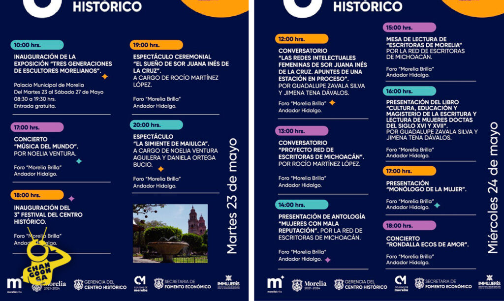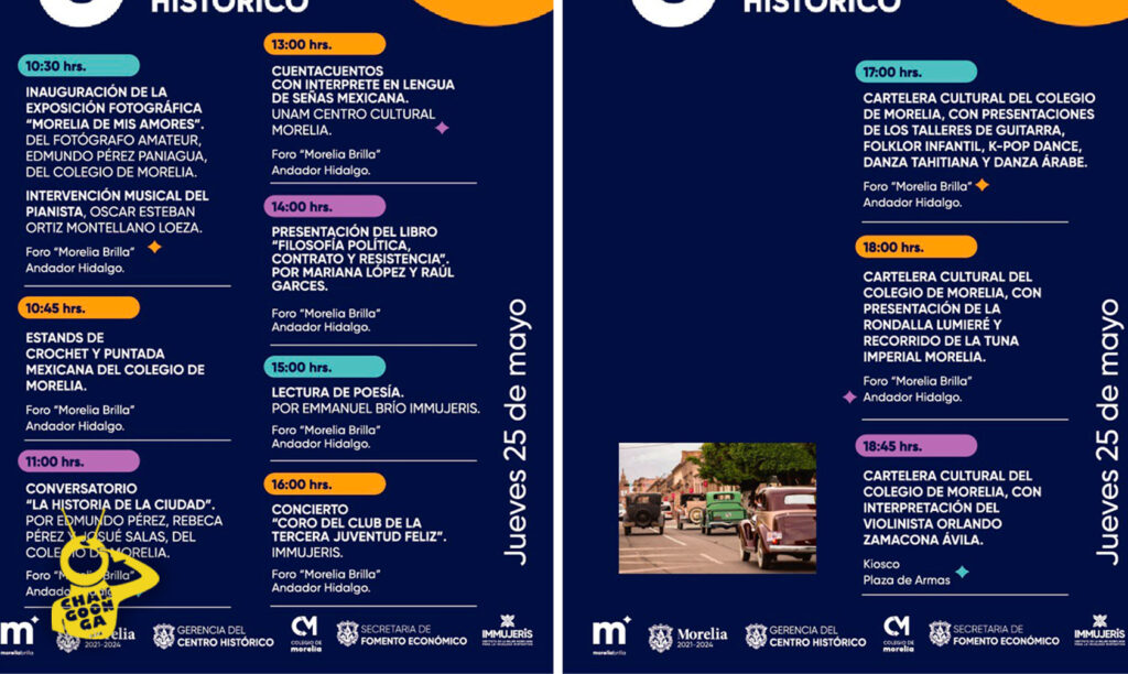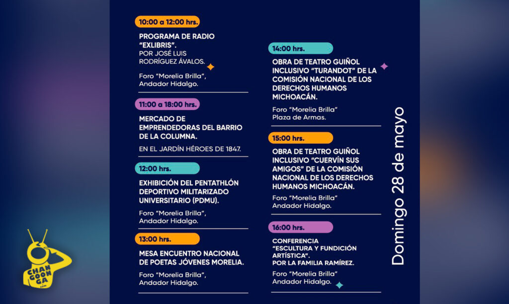 En fin, chécate la cartelera para que aproveches toda la gama de opciones que el Ayuntamiento de Morelia preparó para que continúes festejando el 482 aniversario de la ciudad.