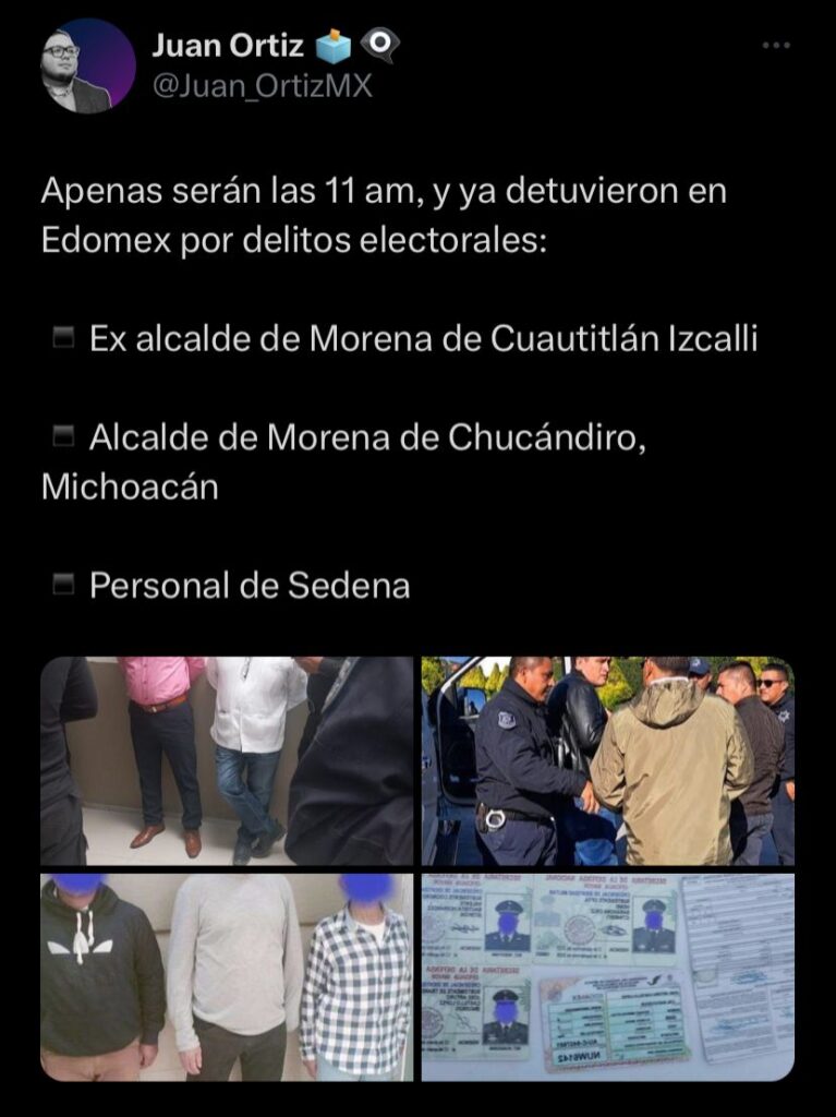 Lo anterior se realizó durante la jornada electoral que se desarrolla en EdoMex, por lo que se espera que las autoridades de aquella entidad federativa determinen las causas de la detención de los funcionarios michoacanos.