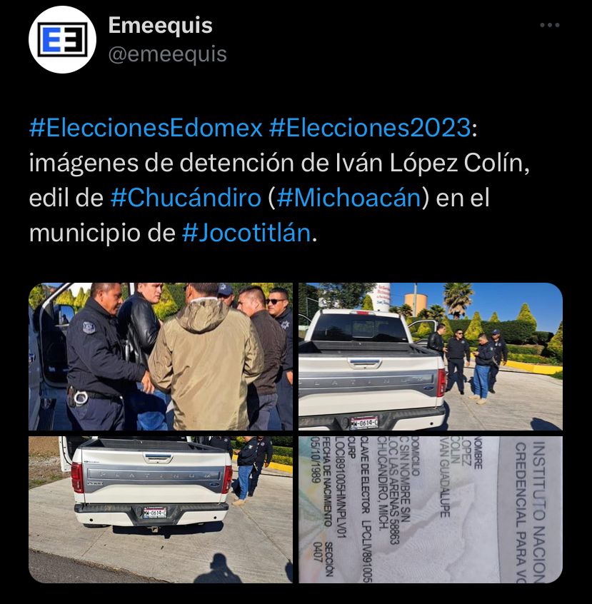 La mañana de este domingo fue detenido Iván López Colín, edil de Chucándiro, Michoacán, mientras se encontraba en el municipio de Jocotitlán, Estado de México (EdoMex).