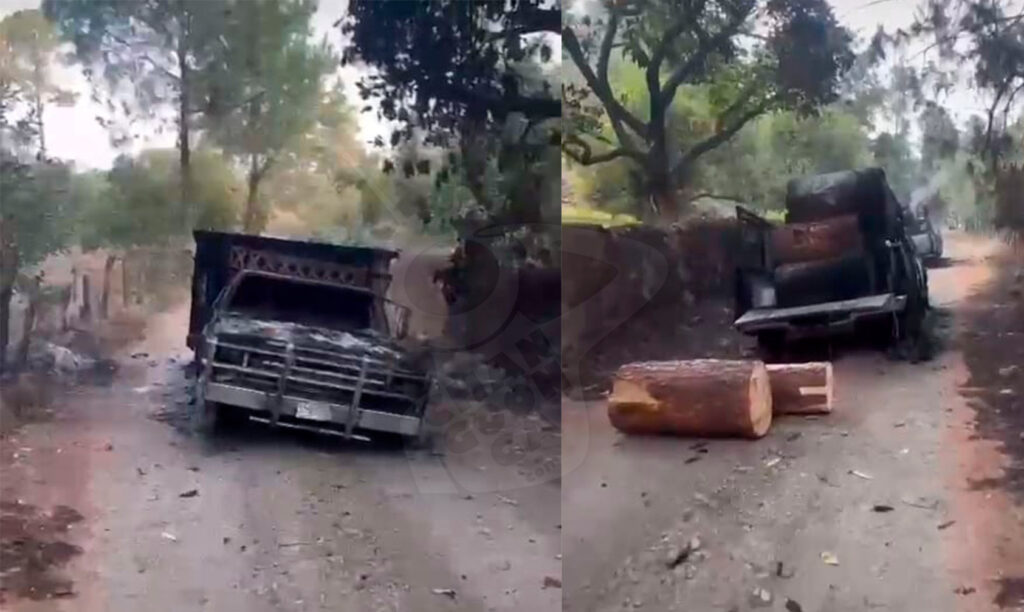 Tres camionetas cargadas con madera en rollo, presuntamente producto de tala clandestina, fueron quemadas en una brecha, en las inmediaciones de la población de San Andrés Corú, perteneciente al municipio de Ziracuaretiro.