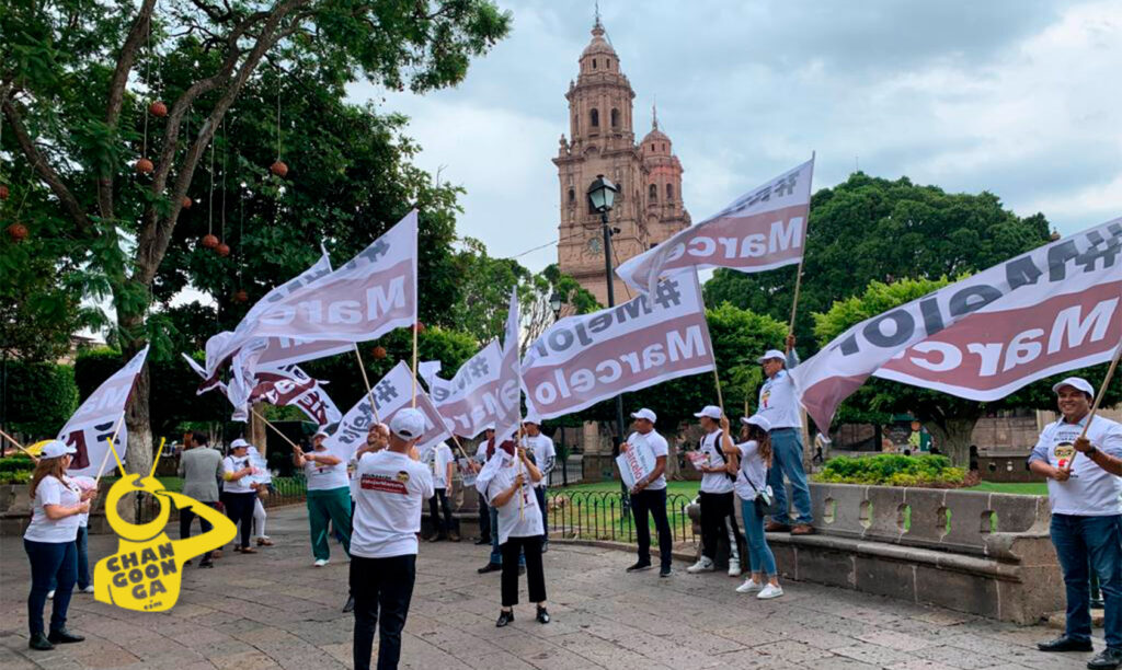 Y para seguir sumando los puntos porcentuales salieron al Centro Histórico de la capital michoacana, con banderas, folletos, gorras, playeras y microperforados con el título #MejorMarcelo para reforzar el posicionamiento en esta ciudad de la Cantera Rosa.