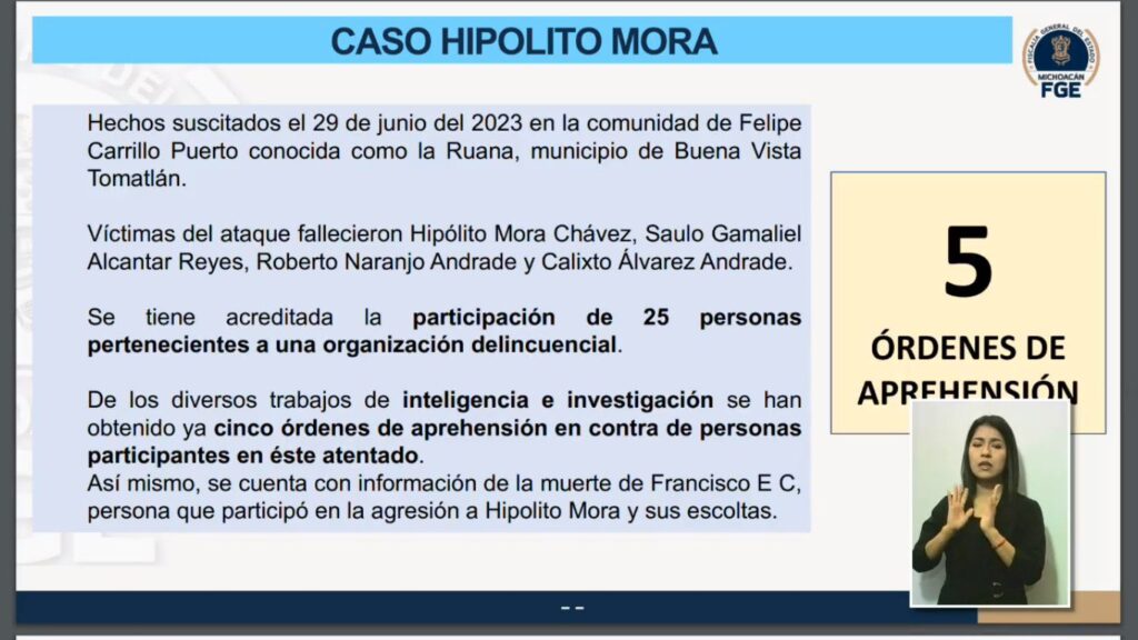 En el atentado que cobró la vida del fundador de las autodefensas en Michoacán, Hipólito Mora Chávez, se acreditó la participación de 25 personas pertenecientes a una organización delincuencial, indicó el Fiscal General del Estado (FGE), Adrián López Solís.