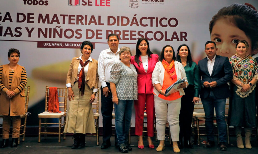 En Uruapan estamos listos para seguir invirtiendo recursos en mejorar la infraestructura educativa en 2024, en el que buscamos duplicar la meta de 100 patios pedagógicos establecidos este año, ya que en el Gobierno Municipal estamos convencidos de que la niñez debe aprender jugando y divirtiéndose, destacó Nacho Campos, presidente municipal de Uruapan, al entregar junto con Gabriela Molina Aguilar, secretaria de Educación en el Estado, material didáctico a niños y niñas de preescolar, de mil 739 planteles, con una inversión de 6.5 millones de pesos.