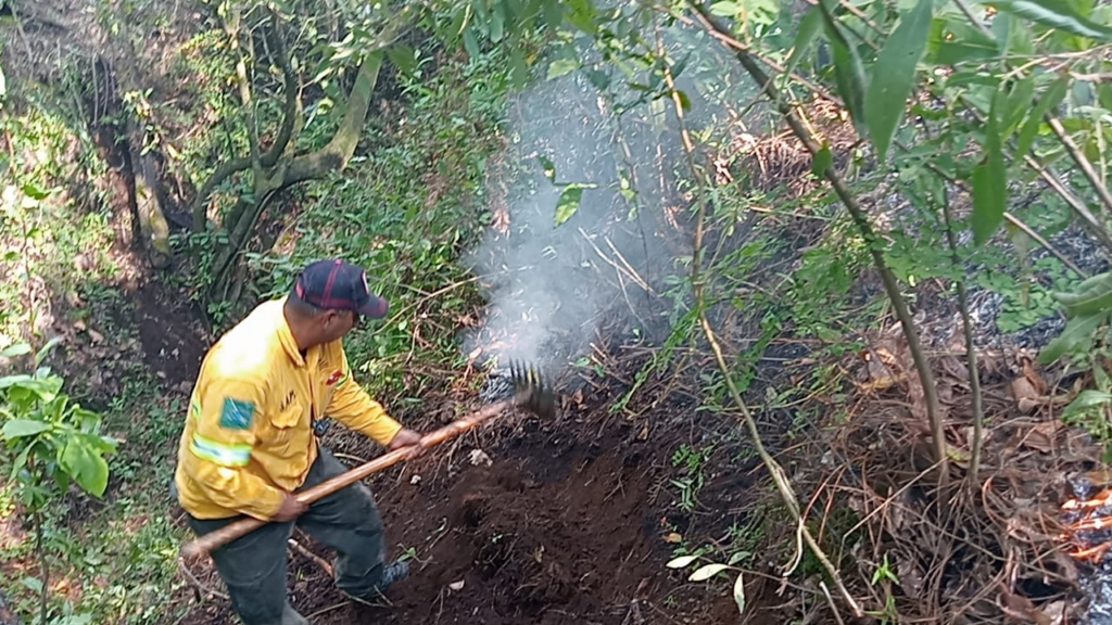 Elementos de las brigadas de manejo de fuego Fénix y Delfines combatieron y sofocaron el incendio forestal registrado en el paraje El Gringo, en el Cerro de la Cruz. Al respecto, Roberto Paleo Avilés, jefe del Área Forestal de Uruapan, informó que se trata del tercer incendio que se presenta en esta temporada, con causas intencionales y con una afectación de mil 300 metros cuadrados de pastizales y arbustos.