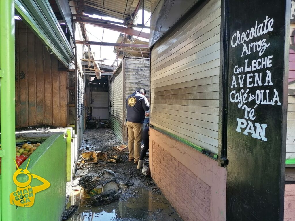 Peritos especialistas en incendios corroboraron que los daños no pusieran en riesgo la integridad de las y los comerciantes, así como de la población usuaria, por lo que se determinó solo el aseguramiento de un espacio donde presumiblemente inició la conflagración.