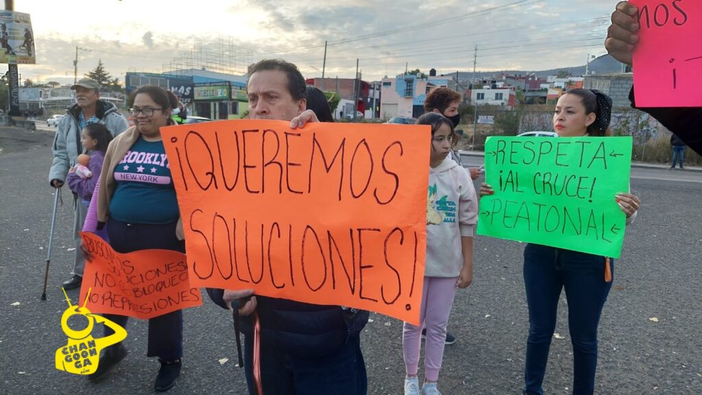 Decenas de vecinos se manifestaron esta tarde en el retorno que fue bloqueado por las autoridades estatales, en el libramiento, a la altura de la colonia Fidel Velázquez para exigir sea aperturado a la brevedad.