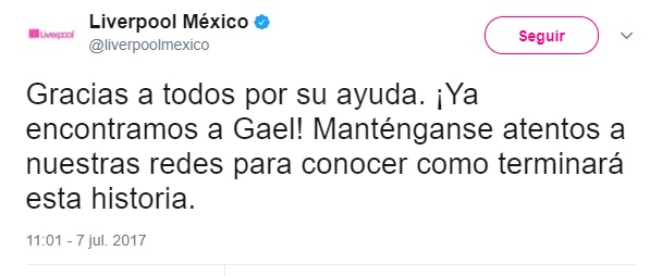Ante el revuelo Liverpool solicitó la ayuda de los usuarios para dar con Gael, que gracias a la ayuda de los internautas el virtuoso protagonista apareció.