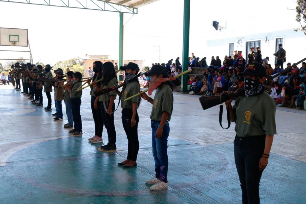 Al menos 15 niños y 5 niñas fueron armados y presentados por las autoridades comunitarias de Ayahualtempa, en Guerrero, para ser parte de las fuerzas de seguridad para defender su territorio a su familia.